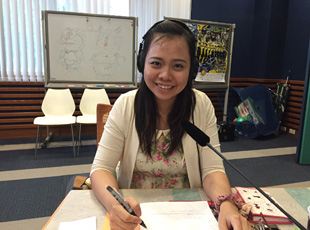 きぼう国際外語学院の「やさしい日本語」プロジェクトでは,自分の日本語を使って教室以外へ自分自身を発信する機会もあります。先日は,地元のFMラジオにも出演しました。これは,外国人自身が教室活動の中で作った日本語の川柳をラジオで披露して,日本人住民に対して外国人の存在を知ってもらったり,活動について理解してもらったりするための活動の一環で行われました。私も自分で川柳を作って,スタジオでヘッドホンをつけて収録しました。この川柳は,日本人住民が多く聞いている栃木県のFMラジオで実際に放送されます。貴重な体験ができて,本当に楽しかったです。