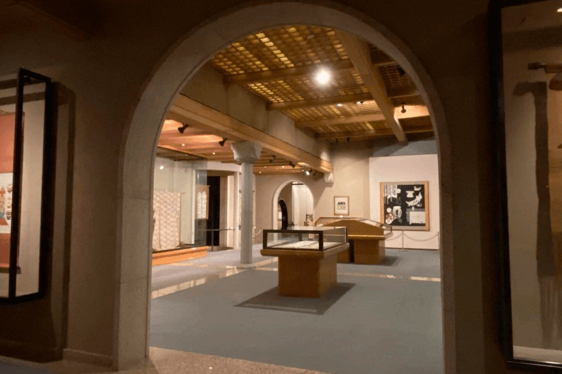 諸室は水の張られた中庭を囲んで配され、来館者はこの中庭の横を通って建物に入る。壁式構造のために小割にされた諸室は、石で枠取られたアーチ形の開口部でつながれており、いくつかの展示室では、床に磨きの黒御影石を用いている。展示室や中庭の一角にはロマネスクの柱頭をもつ柱が立つ。各室の天井は、木工家、早川謙之輔の手によるナラの白木で、展示室によって仕上げに変化をつけている。