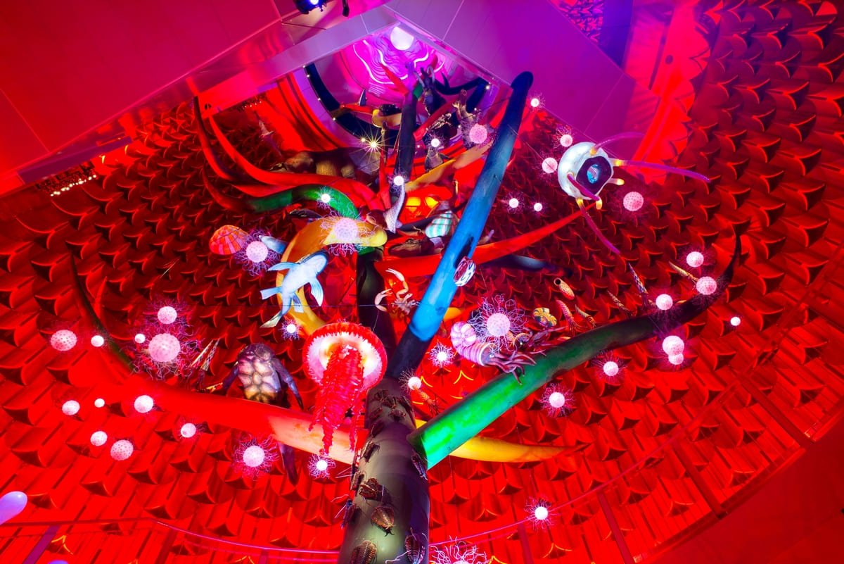 大阪万博閉会後、パビリオンは6ヵ月で解体される予定で、太陽の塔も建設当初は仮設建築物という扱いでした。閉会後に保存要望の署名が多く寄せられ、昭和50年(1975)には永久保存が決定します。内部公開の要望を受け、耐震診断を行い、平成30年(2018)には耐震補強・改修工事が完了しました。現在は万博記念公園内の施設として、内部も公開されています。